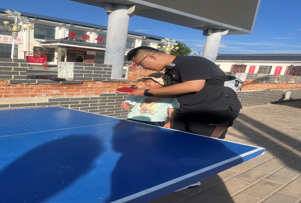 胡紫健老师教小朋友打乒乓球的画面很是温馨