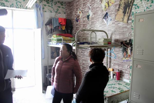 公司领导分别查访了大一,大二员工的每一个宿舍,在走访的过程中,首先进入的是女生寝室,寝内物品摆放较为整齐,地面干净整洁,寝室内装扮温馨舒适,良好的卫生状况得到领导的一致赞赏。走访男生寝室时,领导们及时提醒了个别寝室存在脏乱问题。每到一处,领导都仔细查看寝室楼的各个角落,楼道死角的卫生保洁、寝室门窗和整体卫生情况、寝室配电设施的规范管理,甚至小到寝室阳台的物品工具摆放都成了老师们关注的焦点。并嘱咐随行老师对发现的问题要进行全方位考虑以便更好解决,努力为广老员工提供一个舒适温馨的居住环境。