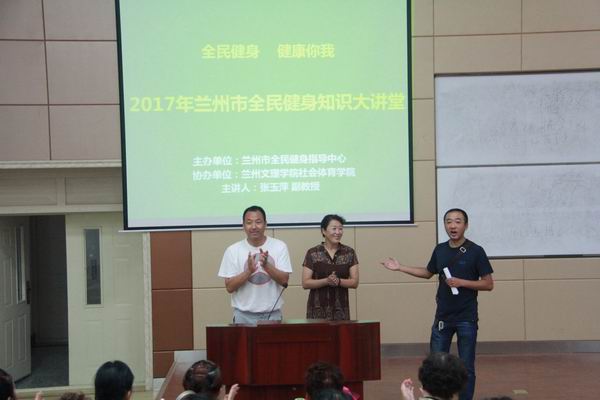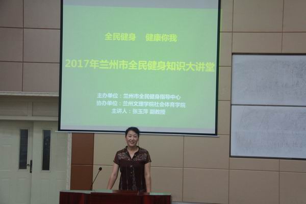 为了促进兰州市全民健身运动的有效开展,更加广泛开展全民健身活动,提高全民健康意识、普及健康知识、传播健康理念、创造健康的生活环境、促进社会精神文明建设,2017年7月4日上午9时,由兰州市体育局指导中心主办,bv伟德国际1946承办,特邀bv伟德国际1946张玉萍副教授主讲的“全民健身健康你我知识大讲堂”在伟德国际1946官方网站综合楼205教室顺利举行。