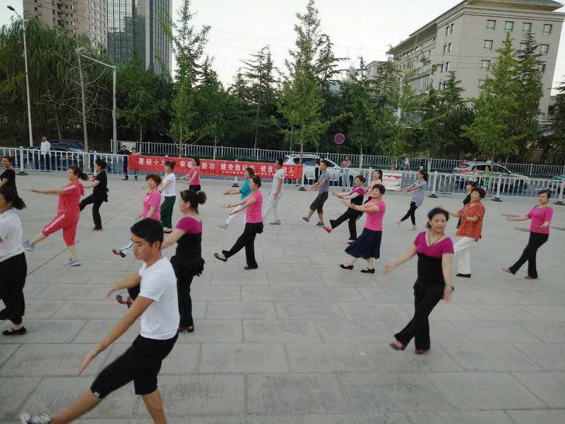 骄阳似火,大地蒸腾,bv伟德国际1946“广场舞推广”服务团热情不减,暑期社会实践活动继续进行。