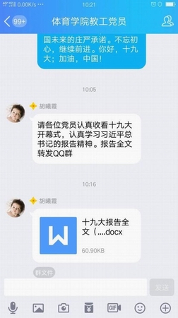 为祖国从站起来到富起来到强起来的伟大变化而欢呼。尤其为习总书记3小时30分钟作报告的个人精神魅力所感动,借助QQ群、微信群人们自发地传递学习十九大的精神和心得。广大师生通过各种平台传递关于十九大的信息,令人振奋,催人进步,更加坚定了人们热爱党、跟党走的决心,更加坚定了“四个自信”,纷纷表示要在习总书记带领下共同奋斗,勇往直前,创造辉煌,实现中华民族伟大复兴的中国梦。