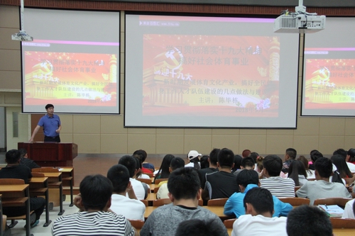 开班仪式后,陈毕栋书记作了专题辅导报告《学习贯彻落实十九大精神,搞好社会体育事业》。他向同学们分享了自己学习十九大报告的心得认识,结合公司专业发展重点就如何抓住机遇,贯彻落实报告精神,深入推进全民健身有关工作,以新思想引领全民健身新实践,以全民健身实现全民健康,促进全民幸福。