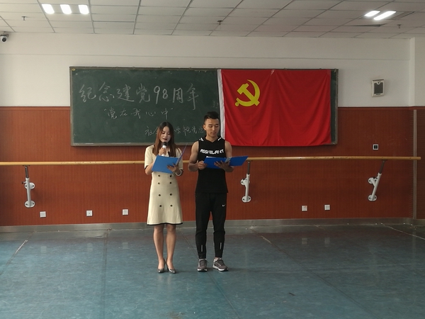 为庆祝建党98周年,公司党总支在艺术职业公司排练厅举办“党在我心中”歌咏会,广大师生党员、入党积极分子和全体同学共同参与的一次轻松愉快的主题党日活动,本次活动由王博、马苗青同学主持。