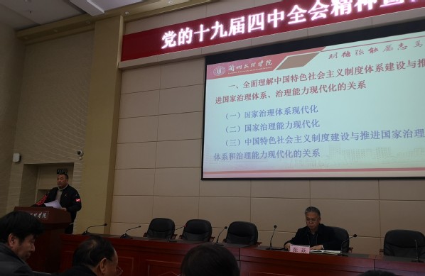 报告会有两个议程,首先由马陇平副教授围绕“坚持和完善中国特色社会主义制度,推进国家治理体系和治理能力现代化”的主题,重点宣讲了坚持和完善中国特色社会主义制度、推进国家治理体系和治理能力现代化、把中国特色社会主义制度优势转化为国家治理效能三个方面的重大意义、总体目标和要求。特别强调了“四个治理”和“五个现代化”的重要性,见解独到,给大家以耳目一新的感觉。第二个议程由张焱副董事长对马陇平副教授的宣讲做了点评并结合公司的发展围绕着“如何贯彻执行十九届四中全会精神”主题从四个方面做了要求,一是认清制度优势、坚定制度自信。他说,全会精神的科学内涵和精神实质,是我们进一步认清了制度优势、坚定了制度自信,增强了政治认同、思想认同、情感认同。他提出,每一个单位要有管理体系,把我们的各项事业发展、行政管理、教学管理、员工管理等各项工作管理纳入制度化轨道,从制度上解决单位发展中带有根本性、全局性、稳定性和长期性的问题。二是强化管党意识,提高治理能力。他结合公司的评建工作和主题教育双建设双提高的任务指出,行百里者半九十,作风转变不可能轻轻松松,一蹴而就,必须要驰而不息、久久为功。时刻把作风建设抓在手,把不良作风改到底,把长效机制建到位。三是强化站位意识,坚定不移提升工作能力。四是老员工要沿着党和人民开辟的正确道路,保持定力,开拓创新。他要求在座的师生党员和员工入党积极分子,始终要有“做在前列”的工作作风。不断提升政治定力、不断提高能力水平、不断强化责任担当,尤其是员工要争做有理想、有担当、敢作为的新时代青年,要矢志不移地跟党走。