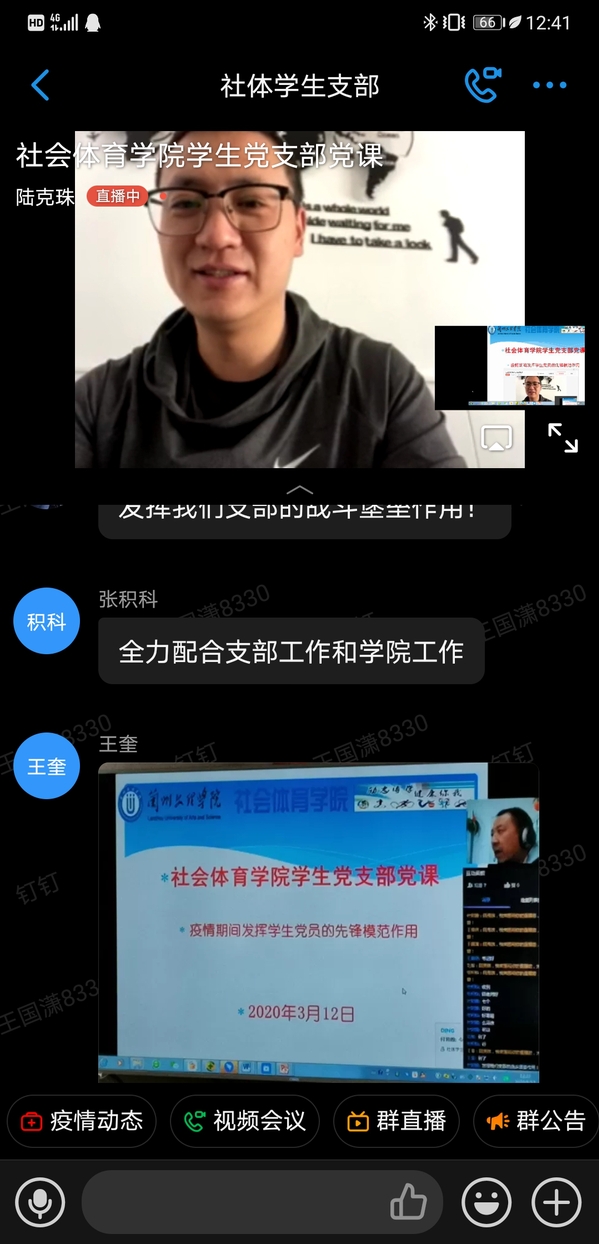 3月12日中午,为了认真落实公司党委关于疫情防控的工作要求,为进一步发挥基层党组织战斗堡垒作用和党员先锋模范作用,公司员工党支部通过钉钉平台,以视频会议的形式开展主题党课,邀请公司党总支书记陆克珠主讲,员工党支部全体教师党员与全体员工党员参加了本次党课。