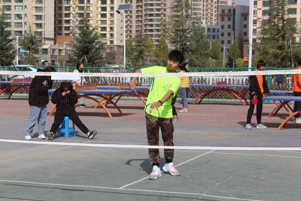 赛前,同学们利用课余时间认真训练,为在比赛中取得优异成绩做积极的准备。赛场上运动员努力拼搏,汗洒球场,同学们在赛场的每个吊球、扣杀,都成为了本次比赛的一个个精彩的瞬间。各公司的啦啦队也在不断的为自己公司的运动员呐喊助威。