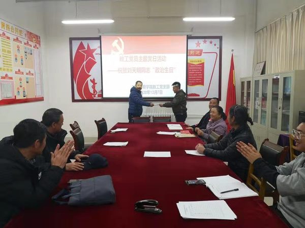 2020年12月7日12时,在公司党员会议室,bv伟德国际1946全体教工党员开展主题党日活动,祝贺刘天明同志“政治生日”,会议由教师支部书记杨立群教授主持。