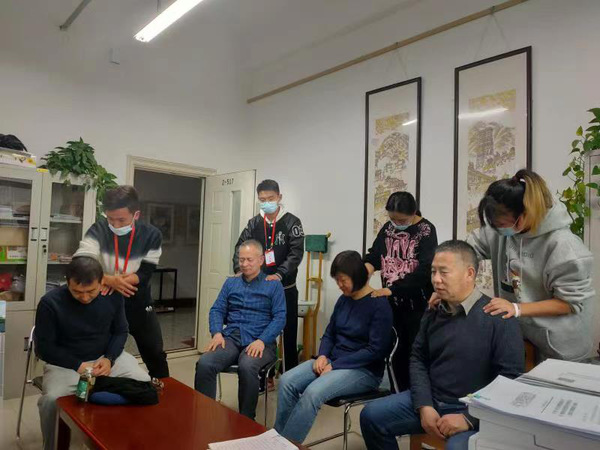 2020年12月29日,bv伟德国际1946教工党支部和员工党支部联合召开主题党日活动,主题为推拿按摩实践走校园,分别设立了示范岗,在教工党支部宣传委员叶菁老师的指导下,员工党支部全体党员及bv伟德国际194619级社会体育指导与管理一班和二班全体同学共计99人,分布在公司各办公地点,面向在校教师和教师公寓的退休教师,将课堂中所学的推拿按摩手法技术用于到实践当中去,在课程实践中找问题、找差距、改方法,也为老师们提供肩颈部放松和工作中的适当调整,并给出合理意见。