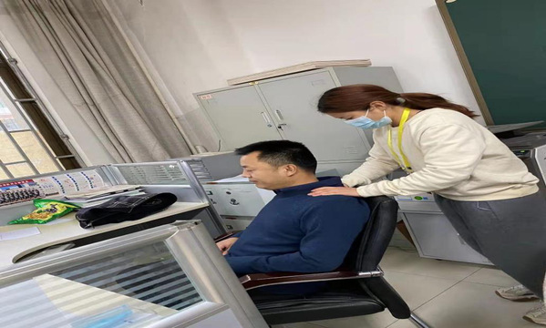各位员工向老师们展现出了自己专业的一面,主要对老师的肩颈部位进行手术按摩。具体运用推、拿、按、摩、揉、捏、点、拍等形式多样的手法和力道,以期达到疏通经络、推行气血、扶伤止痛、祛邪扶正、调和阴阳、延长寿命的疗效。活动主要内容是将课堂中所学的推拿按摩手法技术用于到实践当中去,这不仅提升了自己的专业能力,同时体现出了党员带头模范作用,并且向广大师生展现出了党员服务理念。