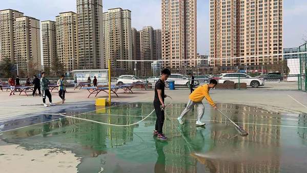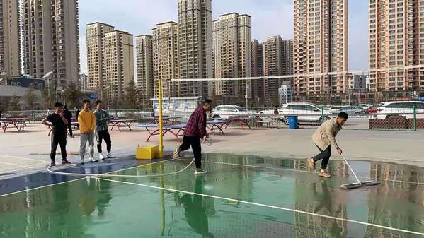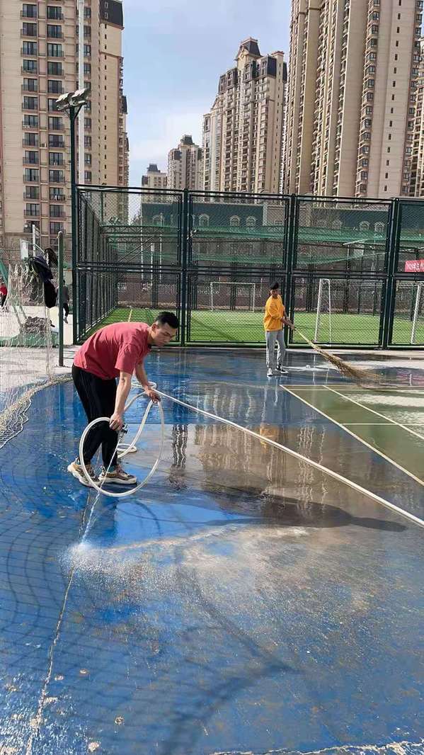 3月6日至3月7日,公司教师朱轩辰带领员工在水压较小、大部分同学尚未返校的情况下,组织同学发扬雷锋精神,将近三千平方米运动场地地面进行全面清扫。受公司新宿舍楼搬迁和寒假浮尘影响,运动场被厚厚的浮土覆盖,如不及时清理,不但会影响公司的外部环境,还会在未来开课时犹豫浮尘导致一些安全隐患,公司师生历时两天,将所有运动场地进行清理打扫,对破损的运动设施进行了简单维修,以确保正常的体育教学活动和全校课余体育锻炼的正常进行。