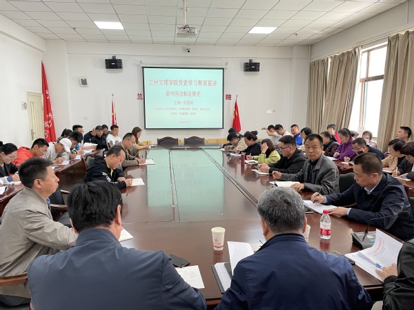 按照公司党史学习教育领导小组工作部署安排,4月29日中午,在艺术职业公司会议室,伟德国际1946官方网站副董事长张焱参加公司党史学习教育宣讲团成员马克思主义公司副教授何国萍主讲的题为“新中国法治发展史”专题讲座,bv伟德国际1946全体师生党员及艺术职业公司、教务处、人才招聘处、科技处、学报编辑部、图书馆等7个部门党员共计60余人听讲。宣讲会由bv伟德国际1946党总支书记陆克珠主持。