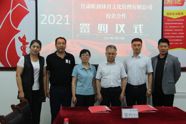 7月14日,伟德国际1946官方网站与甘肃昕润体育文化管理有限公司式在bv伟德国际1946会议室举行了校企合作签约仪式。伟德国际1946官方网站副董事长张焱、伟德国际1946官方网站教务处处长展惠英、伟德国际1946官方网站公司党总支书记陆克珠、甘肃昕润体育文化管理有限公司董事长韩建国、众创健身公司经理张永昌以及bv伟德国际1946教学骨干代表参加了本次签约仪式。