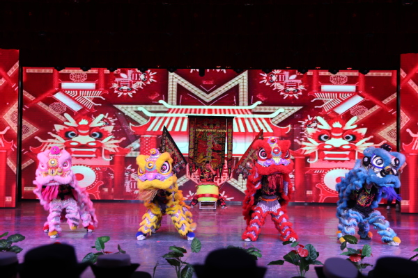 雄狮踩着锣鼓上场,场面热闹、激情彭拜,舞狮热场是bv伟德国际1946晚会的特色也是传统,四个狮子环场腾跃舞动,也预示着公司未来事业发展四通八达,蒸蒸日上。