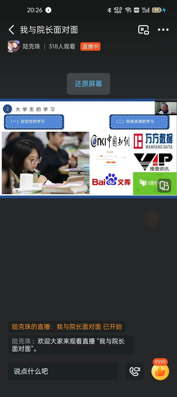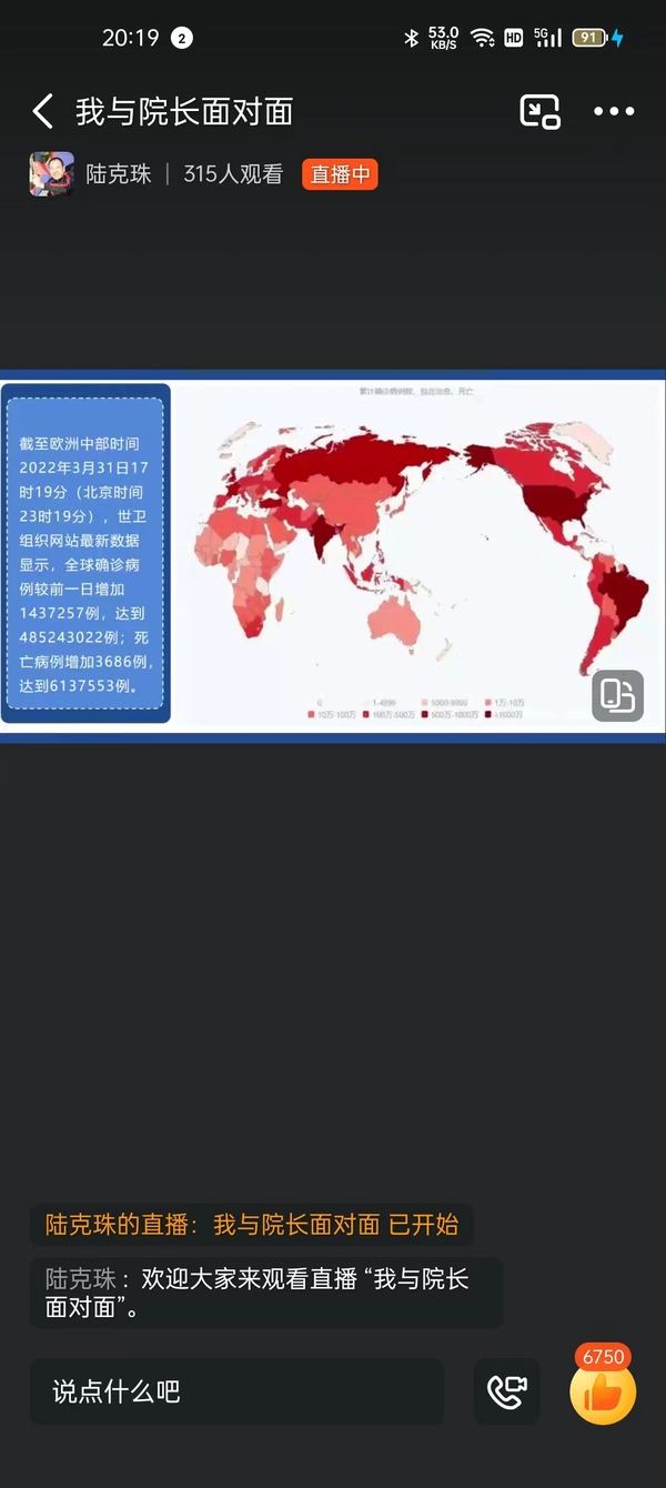 为加强员工和公司之间的相互了解,疏缓疫情期间员工紧张心理,使员工更清晰、更准确掌握专业内涵和个人发展规划,以及员工在疫情期间能够健康的学习、生活,4月3日,bv伟德国际1946通过线上线下相结合的方式,开展了“我与经理面对面:齐携手、共努力、渡难关、聊专业、说学业”交流活动,副董事长张焱、经理陆克珠、领导班子成员及班主任、辅导员、青年老师参加了此次活动。