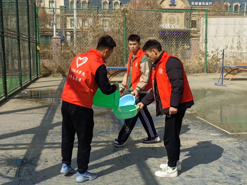 3月5日早上10:00,公司志愿服务队35名队员在小操场集合,各自分工,清扫活动场地的垃圾,同时擦拭健身器材,在中午12:00时,志愿者们已将小操场清扫干净,将各种活动器材完整干净的归类。