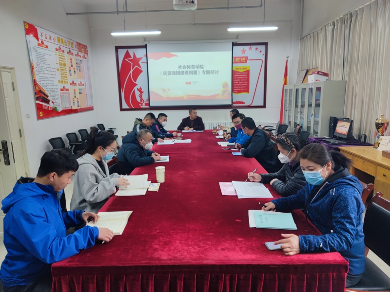 在会上,大家首先观看了中央电视台《新闻联播》节目关于《质量强国建设纲要》的重点阐释,随后陆克珠带领参会人员专题学习了《纲要》主要内容和精神,陆克珠指出,建设质量强国是推动高质量发展、促进我国经济由大向强转变的重要举措,是满足人民美好生活需要的重要途径。同时针对《纲要》第七款“七、增加优质服务供给”第十七条“积极培育体育赛事活动、社区健身等服务项目,提升公共体育场馆开放服务品质”这一内容,刘曼冬、李新龙、刘天明等三位老师分别从体育赛事互动组织、社区保健与健身、体育场馆服务等方面,结合社会体育管理与指导团队建设、课程建设,进行了个人解读。