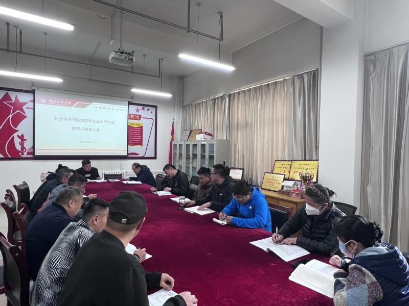 4月6日,社会体育公司在党员活动室召开2023年度全面从严治党暨警示教育大会。党总支书记吴延钟主持会议,并作警示教育,全体教师参加会议。