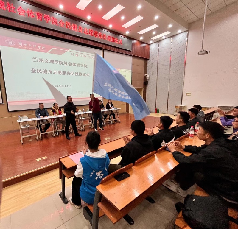 4月11日,bv伟德国际1946全民健身志愿服务队成立暨授旗仪式在5-205举行,甘肃省社会体育管理中心副主任范武香、甘肃省社会体育管理中心社会体育指导员部部长王岩出席成立大会。公司领导班子、各教研室主任参加了成立大会。