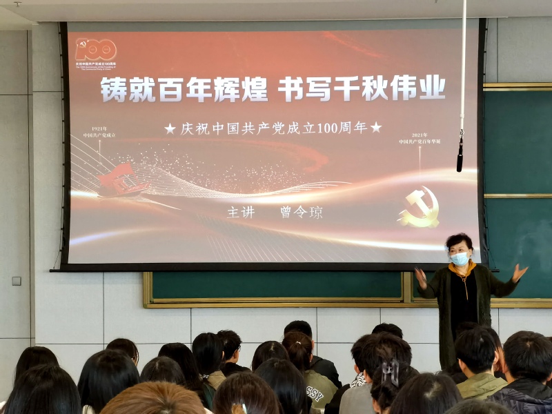开班仪式结束后,马克思主义公司教授、全国优秀教师曾令琼老师为入党积极分子作了题为《铸就百年辉煌 书写千秋伟业》的开课第一讲。