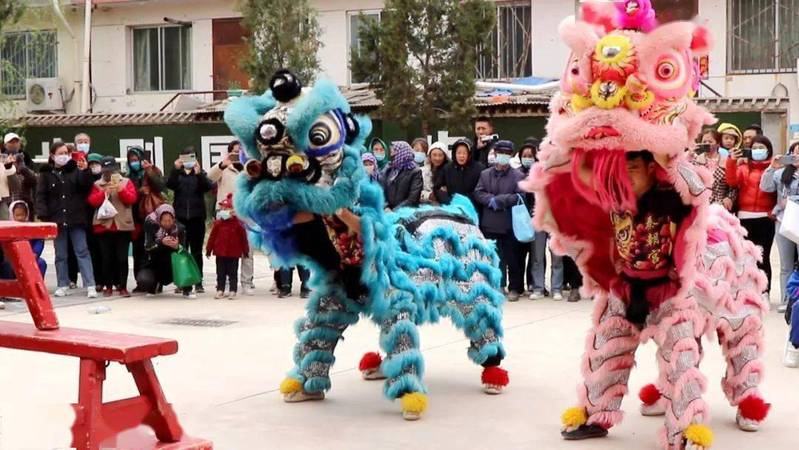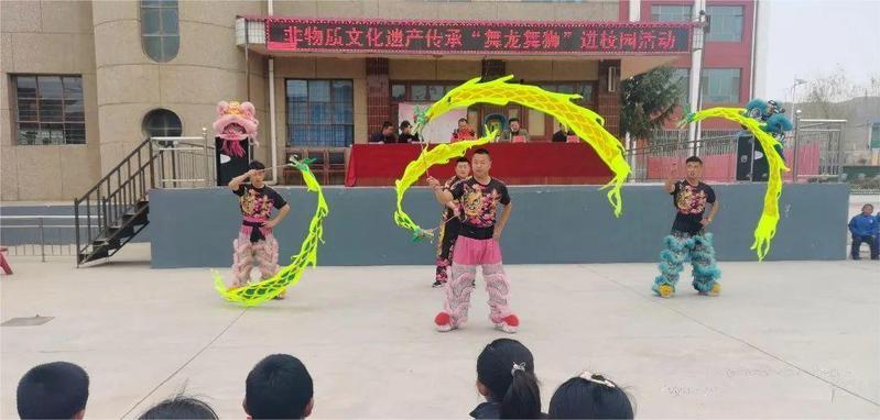 随后,全体师生、部分家代表观看了甘肃省龙狮运动协会会员带来的精彩“舞狮表演”及“彩带龙”表演。
