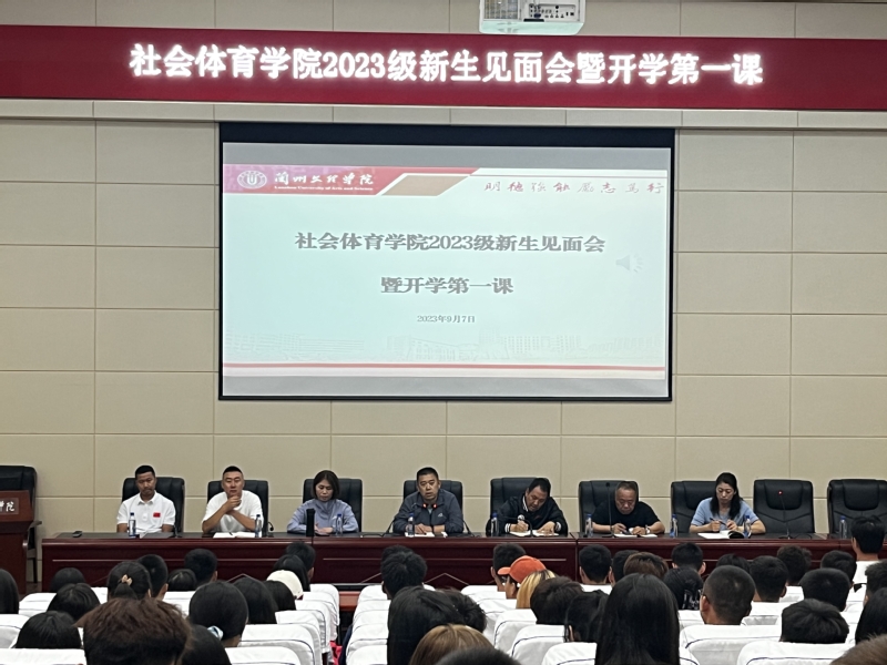 9月7日,社会体育公司2023年新生见面会暨“开学第一课”入学教育启动仪式在致远楼学术报告厅举行。公司经理、党总支副书记陆克珠,党总支书记吴延钟,副经理王奎,各教研室主任、新生班主任、辅导员及公司2023级新生参加此次见面会。会议由张鑫辅导员主持。