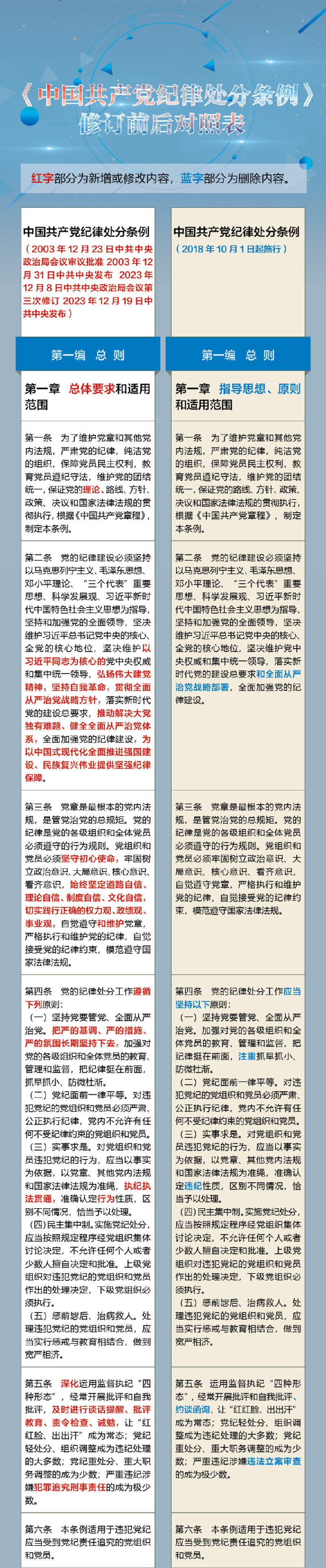 【党纪教育】《中国共产党纪律处分条例》修订前后对照表