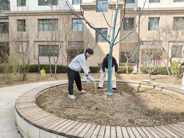 春风三月,雷锋精神薪火相传。为弘扬"奉献、友爱、互助、进步"的志愿精神,深化劳动教育与生态文明建设,3月11日,公司党总支牵头,分团委组织员工开展"弘扬雷锋精神·守护校园绿意"校园浇树志愿服务活动,以实际行动为校园绿植"补水赋能",让雷锋精神在实践中落地生根。